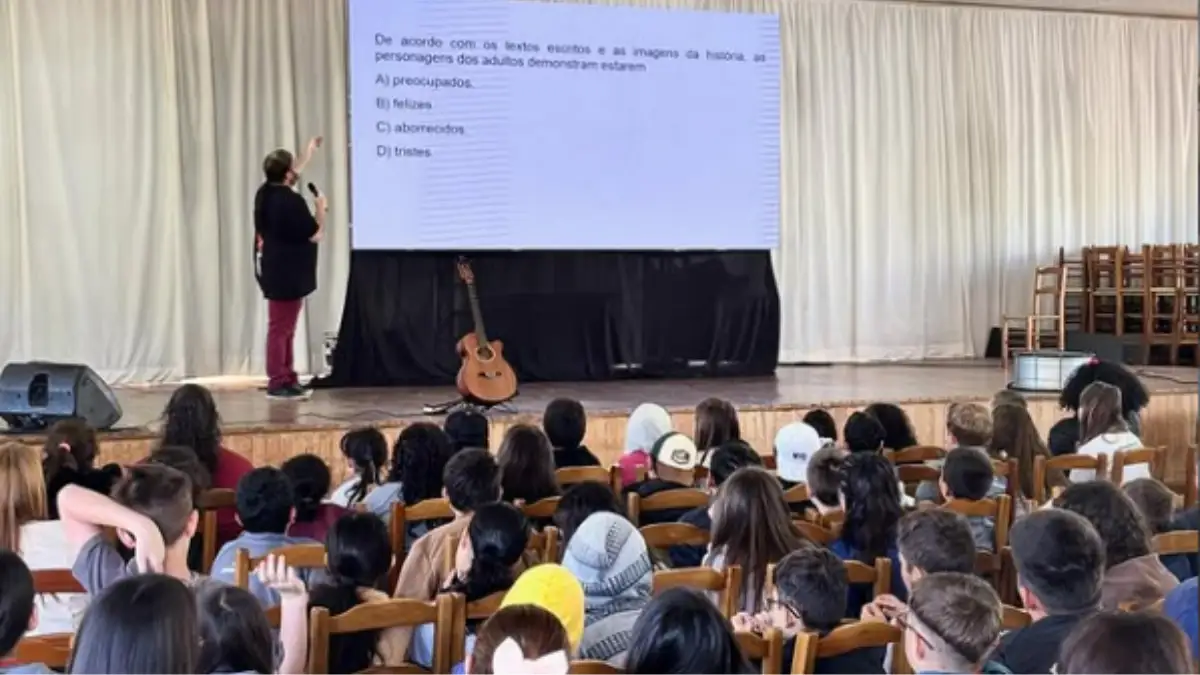 Nesta segunda-feira, 20 de outubro, os estudantes dos 5º anos da Rede Municipal de Ensino de Coronel Vivida participaram do aulão preparatório para o SAEB 2025 (Sistema de Avaliação da Educação Básica). O encontro teve como objetivo reforçar o aprendizado e motivar os alunos para a prova que será aplicada na próxima quarta-feira, 22 de outubro.