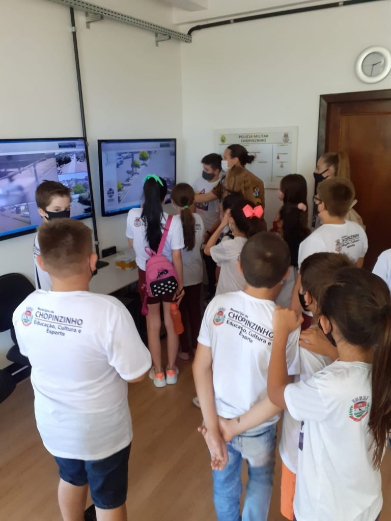 Na ocasião os alunos aprenderam um pouco sobre o trabalho dos policiais militares, sobre os equipamentos utilizados pela Polícia Militar e, depois, fizeram um lanche com os policiais.