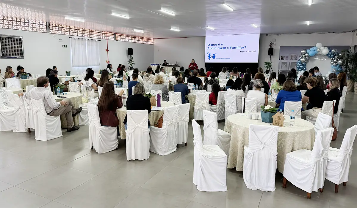 Além das discussões técnicas, o evento contou com momentos de emoção, incluindo a apresentação de um vídeo com depoimentos de famílias acolhedoras.