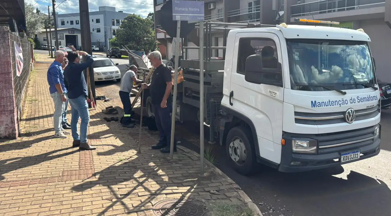 O primeiro semáforo está sendo implantado no cruzamento da Rua Romário Martins com a Rua Benjamin Bordin, nas proximidades do Lando Restaurante. O local é conhecido pelo intenso movimento diário de veículos e pedestres, o que aumenta o risco de acidentes.
