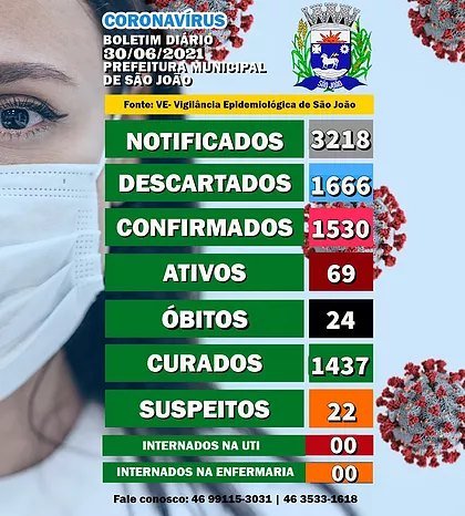 A Secretaria Municipal de Saúde de São João divulgou, na quarta-feira (30), novo boletim epidemiológico da covid-19.