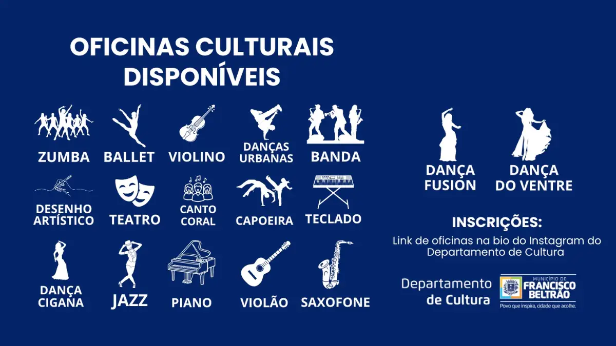 O Departamento de Cultura de Francisco Beltrão abriu inscrições para mais de 17 oficinas culturais gratuitas em 2026. A principal novidade neste ano é a descentralização das atividades, que passam a ocorrer em diferentes regiões da cidade.