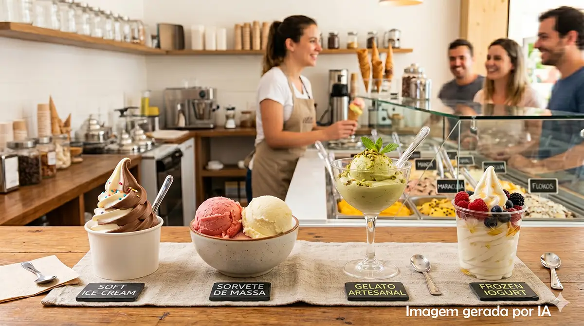 Além do sorvete tradicional, há opções como gelato, sorbet, frozen yogurt, semifreddo e granita, cada uma com ingredientes, texturas e processos de fabricação bem distintos. Entender essas diferenças ajuda o consumidor a escolher melhor na hora de pedir.