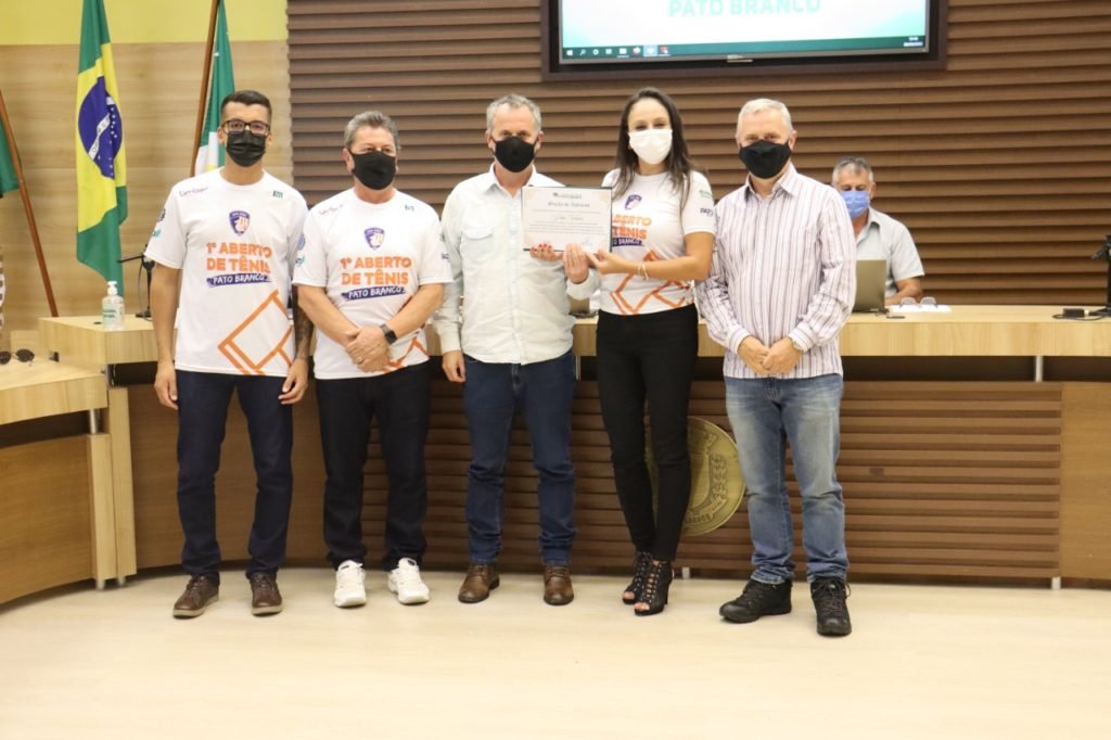 O Grupo Pato Tênis foi homenageado com Moção de Aplausos na sessão ordinária de segunda-feira (28), da Câmara Municipal de Pato Branco, pela promoção do 1° Aberto de Tênis de Pato Branco, realizado nos dias 19 a 21 de novembro do ano passado, como forma de divulgar e promover a modalidade de tênis de campo na cidade.