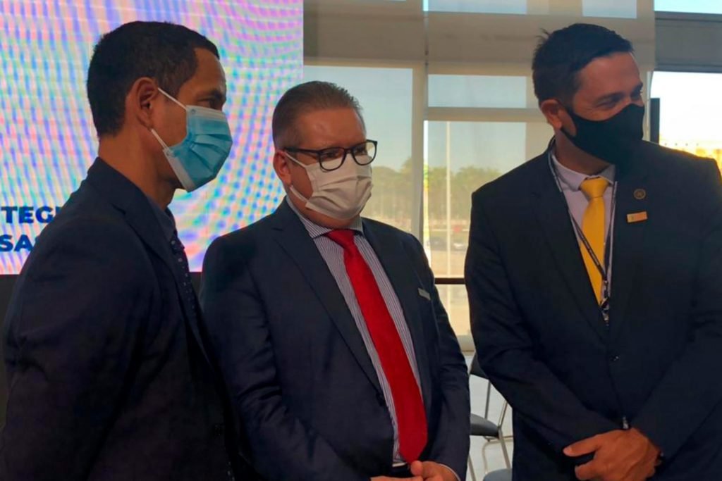PRESENÇAS – O Secretário da Segurança Pública, Romulo Marinho Soares, esteve presente no Fórum sobre Proteção Integrada de Fronteiras e Divisas juntamente com o presidente do país, Jair Bolsonaro; o Ministro da Justiça e Segurança Pública, Anderson Gustavo Torres; o Coordenador do Centro de Inteligência Estratégica da Segurança Pública, Coronel Luiz Augusto de Oliveira Santiago; o Secretário Nacional de Políticas sobre Drogas, Luiz Roberto Beggiora; o Secretário de Assuntos de Defesa e Segurança Nacional do GSI, Brigadeiro do Ar Cláudio Wilson Saturnino Alves; o Coordenador Geral, o Secretário de Operações Integradas do MJSP, delegado Alfredo de Souza Lima Coelho Carrijo; o Coordenador geral de Fronteiras do Ministério da Justiça, tenente-coronel Saulo de Tarso Sanson Silva e demais autoridades.