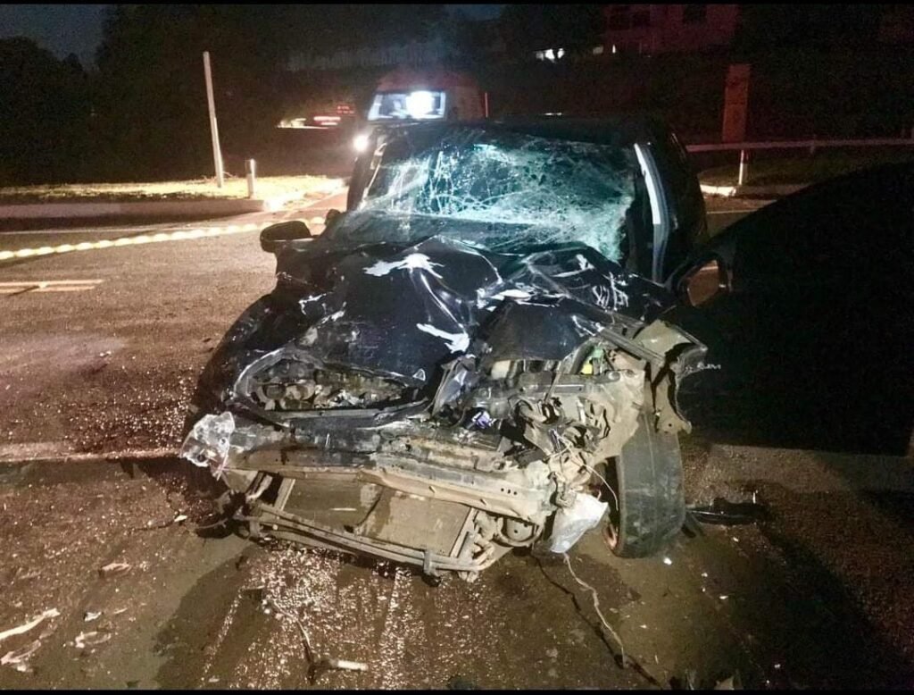 Um acidente de trânsito foi registrado no entroncamento da BR – 373 com a PR – 562, no trecho que liga Coronel Vivida a Honório Serpa, na noite de sábado (10). A colisão envolveu um veículo Corsa, com placas Mercosul, e um caminho guincho, com placa de Itaquirai – MS.