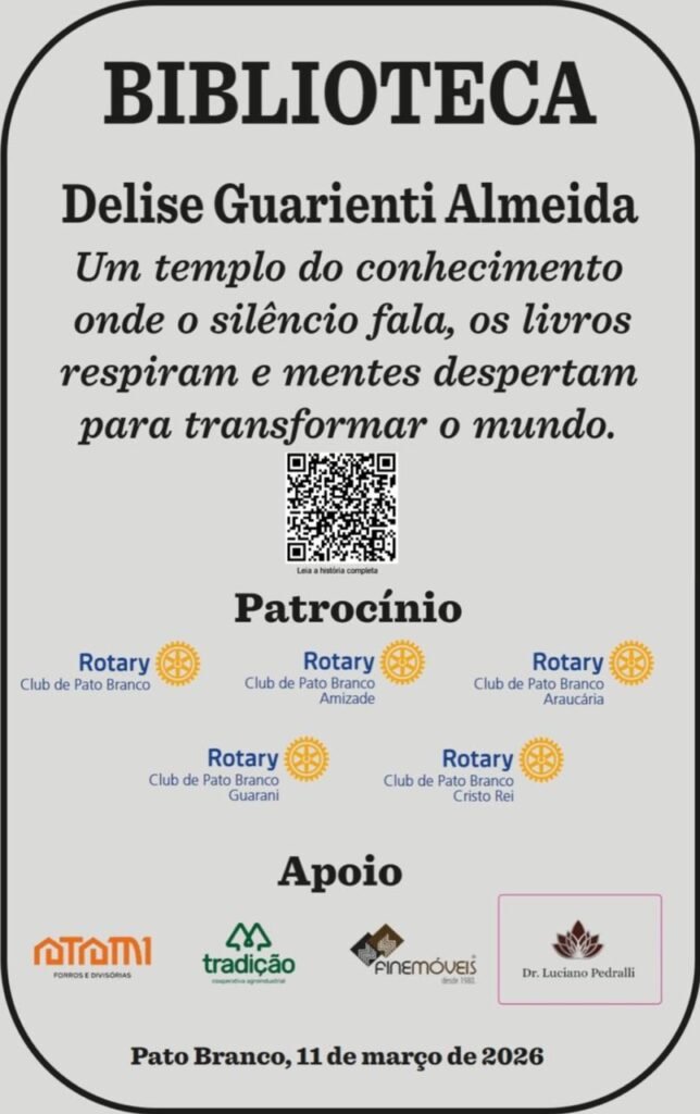 A criação da biblioteca foi possível graças a uma rede de colaboração envolvendo Rotary Clubs, empresários e membros da comunidade de Pato Branco.