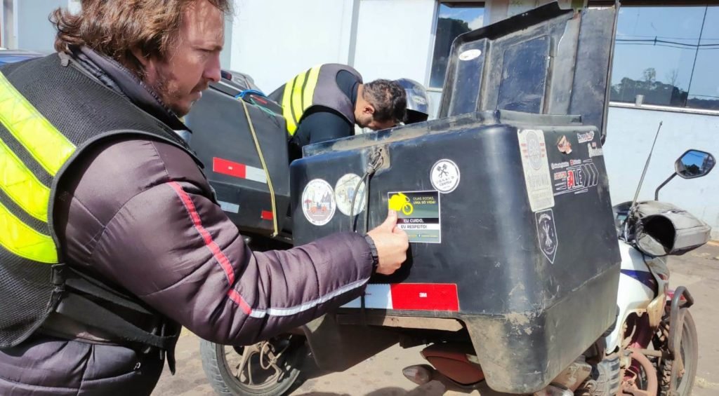 Integrando as ações do Maio Amarelo 2022, começou nesta semana a campanha “Duas rodas, uma só vida”, em Francisco Beltrão, com abordagens a motociclistas, especialmente os que atuam no ramo de entregas. Além das orientações, está acontecendo a colocação de adesivos nas motos. Estão sendo realizadas visitas nas empresas dos mais diversos segmentos que possuem entregadores. Também será feita blitz educativa em parceria com a Policia Militar, visando atingir o maior número de motociclistas. A equipe formada por agentes do Departamento Municipal de Trânsito de Francisco Beltrão (Debetran) e policiais militares estão atuará de forma conjunta com o objetivo de orientar sobre a responsabilidade, respeito e escolhas praticadas no trânsito. Alertará sobre a agilidade do motociclista, mas ressaltando a fragilidade que o mesmo se encontra, a necessidade de respeitar os limites de velocidade, sinalização de trânsito, uso correto do capacete, manutenção preventiva das motos, equipamentos obrigatórios, dados estatísticos de acidentes de trânsito envolvendo motociclistas e frota veicular, dentre outros fatores.