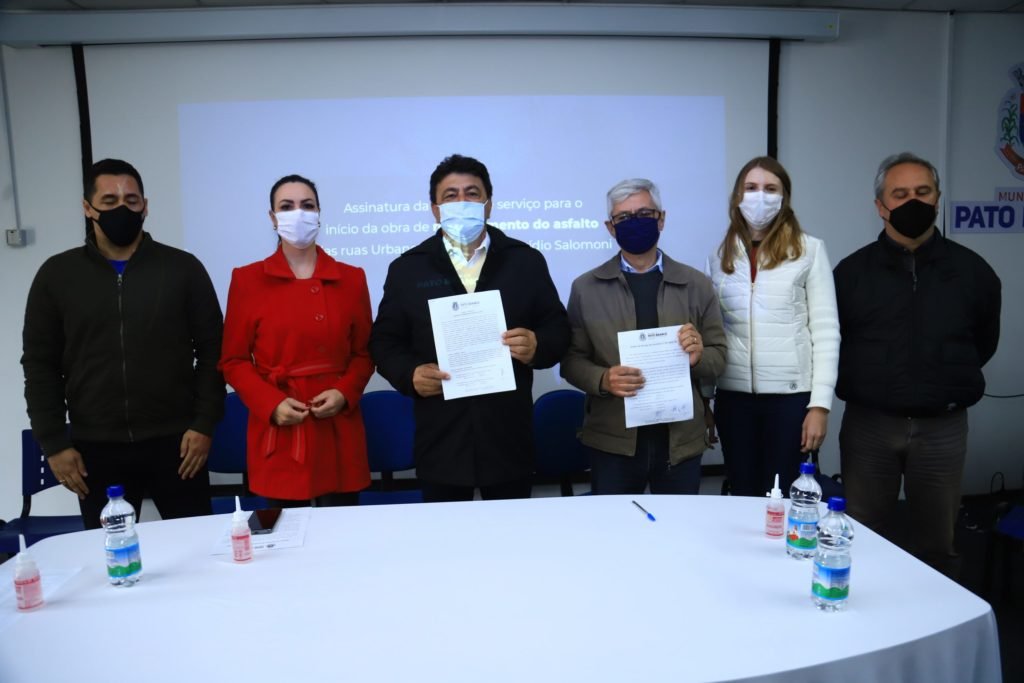 Na quinta-feira (17), o prefeito de Pato Branco, Robson Cantu, assinou, a ordem de serviço para o asfaltamento das ruas Urbano Wittmann e Possídio Salomoni. São 3.964 metros quadrados de obra, entre as duas ruas, e um investimento de R$ 333.010,47, sendo R$ 296.996 em convênio com o Governo Federal, através do Ministério do Desenvolvimento Regional, e R$ 36.014,47 em contrapartida do município.