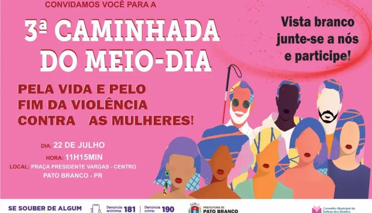 A Prefeitura de Pato Branco, por meio da Secretaria de Políticas para Mulheres, promove na próxima terça-feira (22) a “Caminhada do Meio-Dia”, uma ação de mobilização e conscientização pelo fim do feminicídio e da violência contra a mulher. O ato integra uma iniciativa estadual coordenada pela Secretaria da Mulher, Igualdade Racial e Pessoa Idosa (Semipi) e ocorrerá simultaneamente em 138 municípios do Paraná.