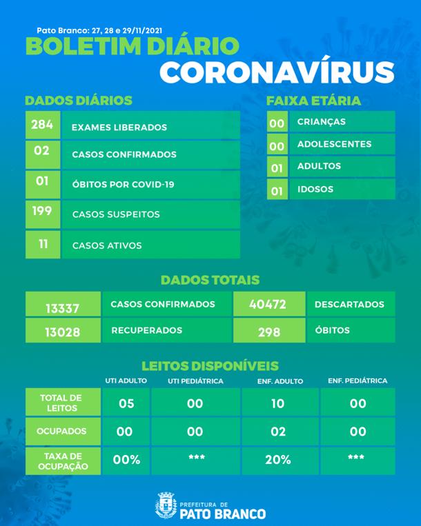 Conforme estabelecido na mais recente reunião do Comitê de Enfrentamento à Covid-19 em Pato Branco, os boletins deixam de ser divulgados nos finais de semana e feriados.