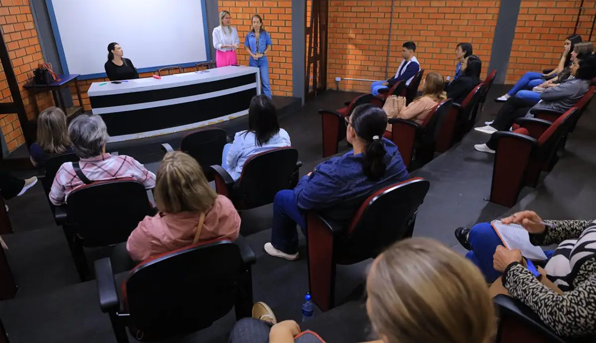 A formação reuniu professores, coordenadores e gestores das escolas que desenvolvem oficinas e projetos dentro do programa, incluindo tanto profissionais já atuantes quanto aqueles que iniciaram as atividades no dia 1º de abril.
