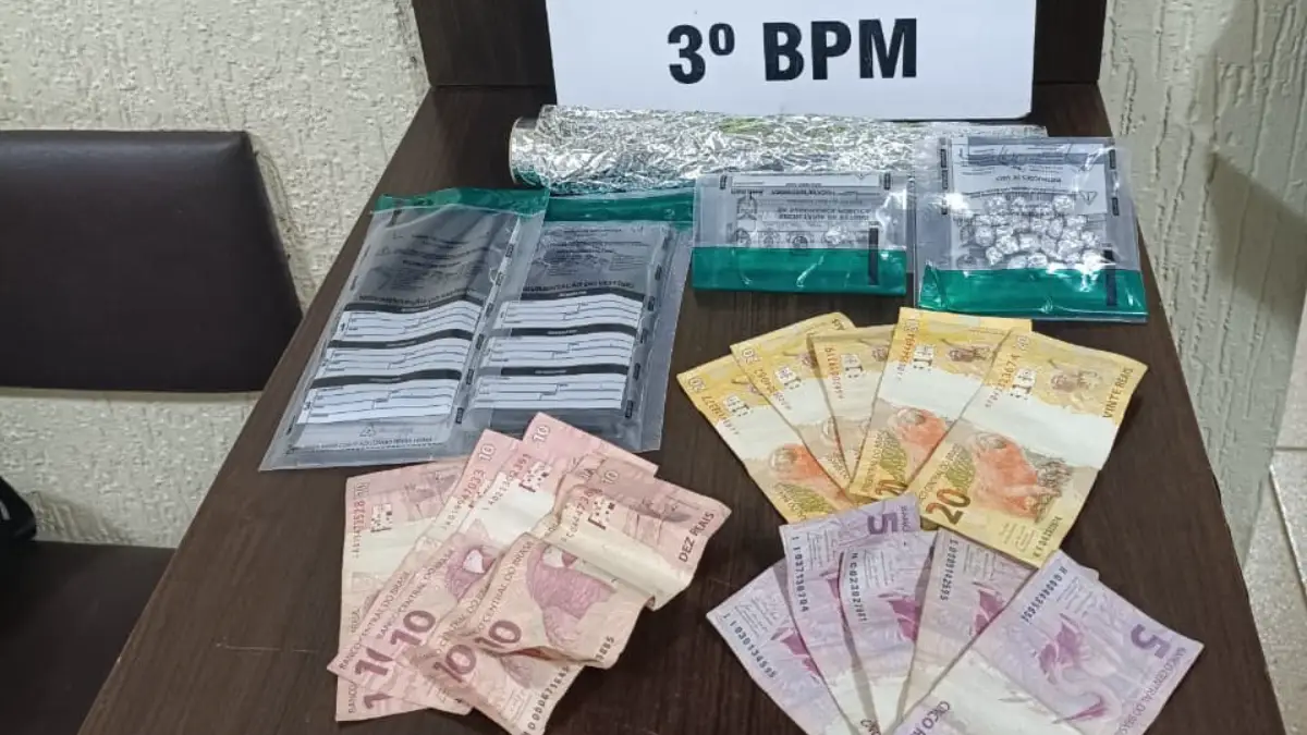 Os policiais também localizaram R$ 193,85 em dinheiro e materiais comumente utilizados para embalar drogas.