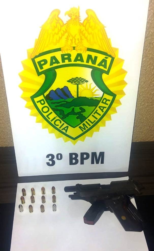 A PM abordou o veículo, no qual além do condutor (49) havia um passageiro (61). Em buscas no interior da caminhonete, foi localizada uma pistola, calibre 380, com 12 munições.