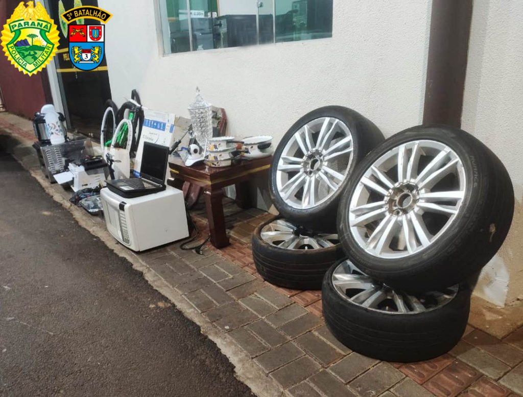 Os policiais agiram rápido e localizaram os veículos no bairro Sudoeste, carregados com os objetos furtados. Entre os produtos recuperados estão uma geladeira, um forno elétrico, 4 rodas com pneus, um notebook, uma bicicleta, um forno micro-ondas, uma máquina de lavar e uma furadeira. Além da recuperação dos objetos, a ação policial resultou na prisão de quatro maiores de idade e também foi detido um adolescente, de 17 anos, todos acusados do furto. Eles foram entregues, juntamente com os objetos recuperados e os veículos, na Delegacia da Polícia Civil para as providências cabíveis ao fato.