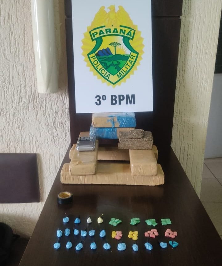 Com um dos homens, a polícia encontrou aproximadamente 5 Kg de maconha, além de porções fracionadas de cocaína e comprimidos de ecstasy.