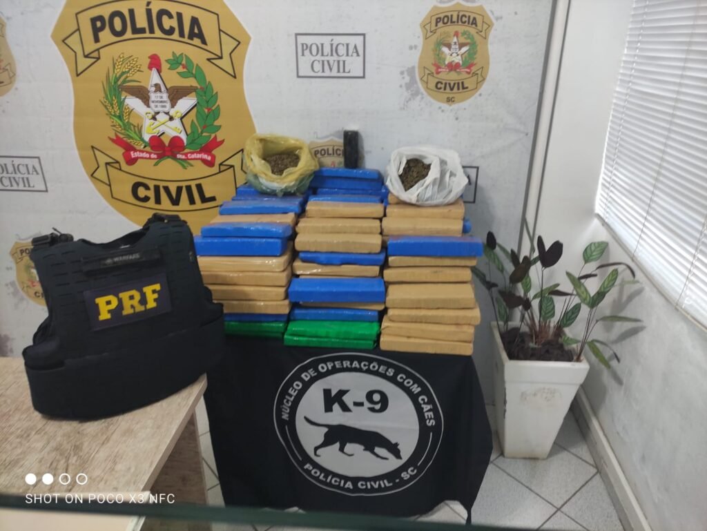 Diante disso, policiais da PRF e do Núcleo de Operações com Cães de Canoinhas-SC lograram êxito em abordar o veículo, um GM Celta, e localizaram cerca de 150 kg de maconha e 500 gramas de haxixe.