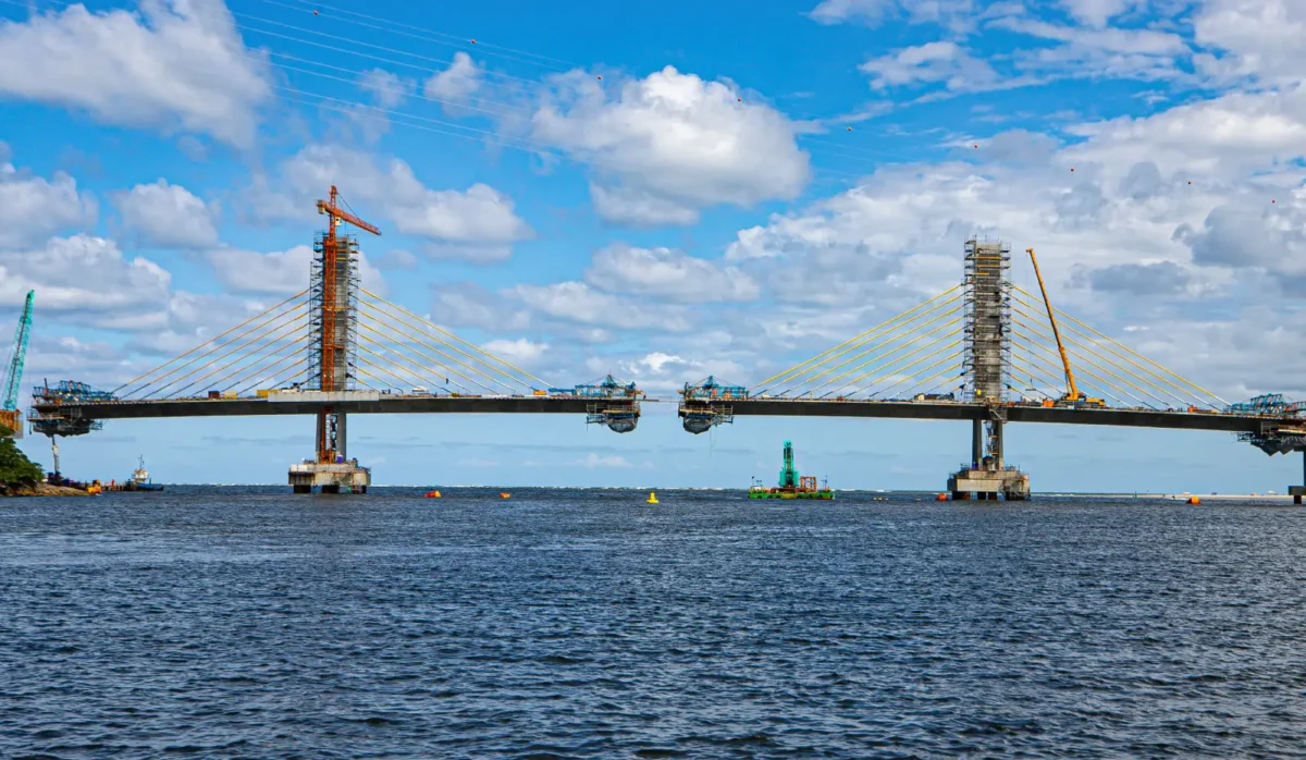 A obra da Ponte de Guaratuba avança para uma das etapas mais marcantes do projeto: o fechamento do trecho estaiado. Esse momento representa o encontro definitivo dos dois lados da estrutura, construídos a partir dos apoios 04 e 05, sobre o canal de navegação da Baía de Guaratuba.