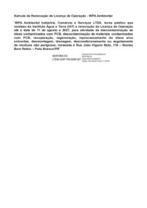 Súmula de Renovação de Licença de Operação – WPA Ambiental