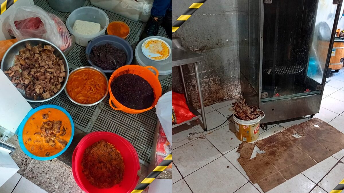 A equipe técnica identificou condições de higiene inadequadas durante a vistoria. Encontrou também falhas na manipulação de alimentos e ambiente insalubre.